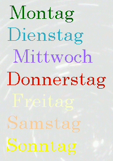 The days do not look as coloured but more like illiminated with coloured light or covered with foils.